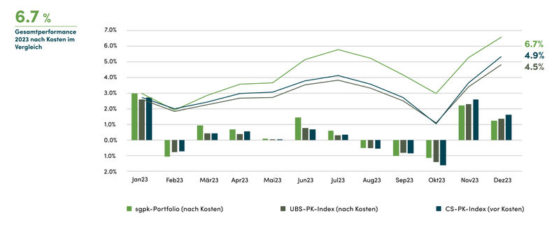 Positive Jahresperformance 2023 der Aktienmärkte und des sgpk-Anlagegeschäfts