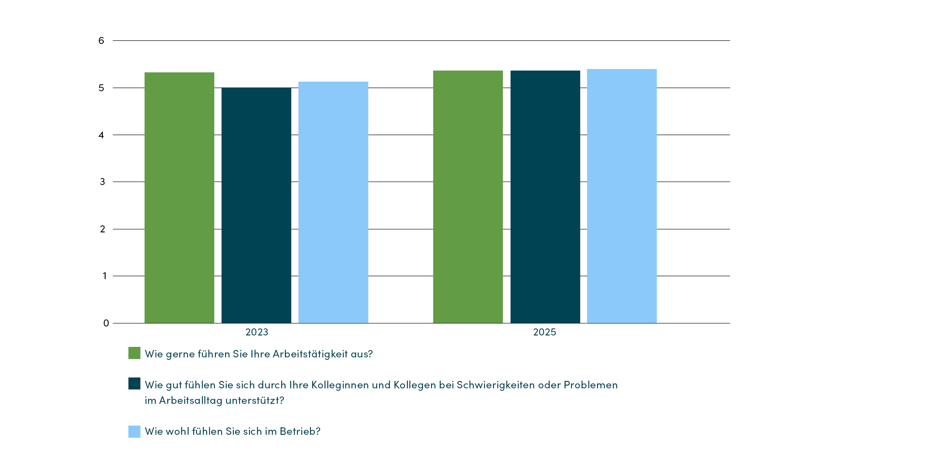 Motivierte und engagierte Mitarbeitende sind eine zentrale Voraussetzung, damit wir unseren Auftrag engagiert, motiviert und mit Freude erfüllen können. Die Befragung 2025 bestätigt, dass wir in vielen Bereichen auf einem guten Weg sind. Gleichzeitig sind wir uns bewusst, dass eine nachhaltige Unternehmenskultur Pflege braucht, durch konsequentes Zuhören, Priorisieren und Dranbleiben.