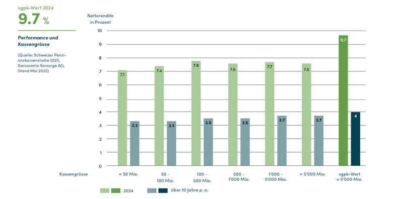 Die neueste Ausgabe der Swisscanto Pensionskassenstudie bestätigt einmal mehr, dass die Schweizer Pensionskassen auf einem soliden Fundament stehen. Trotz eines herausfordernden Marktumfelds wurden im Geschäftsjahr 2024 überdurchschnittliche Anlagerenditen erzielt und die Deckungsgrade gestärkt. Die St.Galler Pensionskasse (sgpk) schneidet im Vergleich zur Branche einmal mehr positiv ab – ganz besonders bei der Performance des Anlagegeschäfts und bei der Kosteneffizienz.