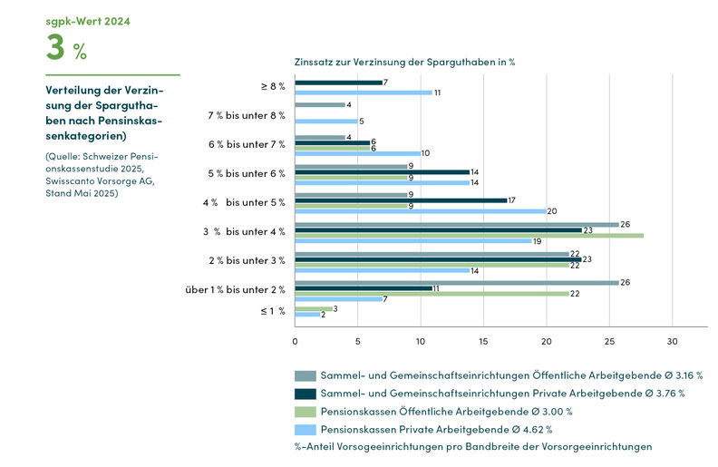 Die Sparguthaben unserer Versicherten verzinsten wir im Jahr 2024 mit 3 Prozent – damit liegen wir im Durchschnitt der öffentlich-rechtlichen Pensionskassen der Schweiz.